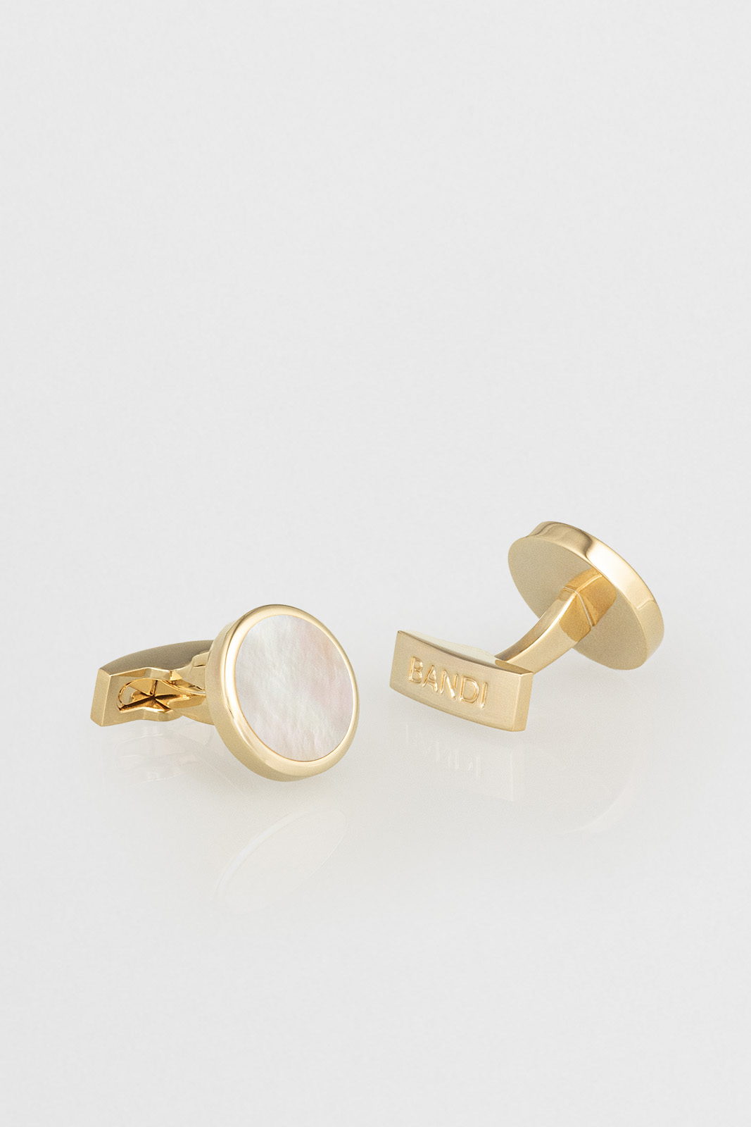 Manžetové knoflíčky BANDI LUX 269 v sobě spojují jemnost a noblesu. Kulatý tvar ve zlatém odstínu doplňuje perleťový střed, který se při dopadu světla decentně leskne a vytváří elegantní odlesky.