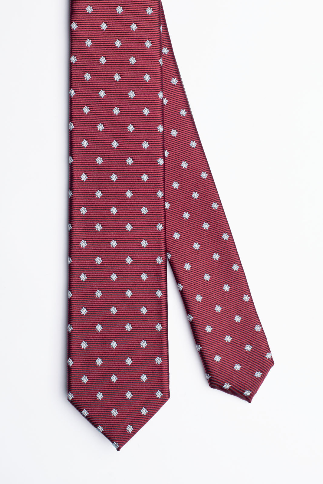 Kravata BANDI AYDE 01 bordó barvy s decentním vzorem se hodí do práce i na společenské události, jakými jsou plesy, divadelní představení či koncerty.