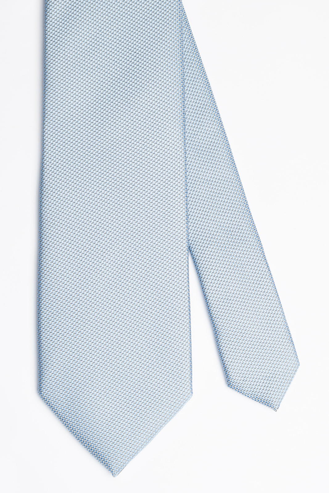 Světle modrá kravata ALQUEZ 14 je skvělým doplňkem vašeho slavnostního outfitu. Vázanka má jemnou strukturu prošitou stříbrnou nitkou, která jí dává decentní odlesk. Vyniknete s ní zejména během svateb, jubileí, divadelních premiér a jiných radostných setkání, kdy je vhodné oblek obohatit o honosnější zdobnější prvek.