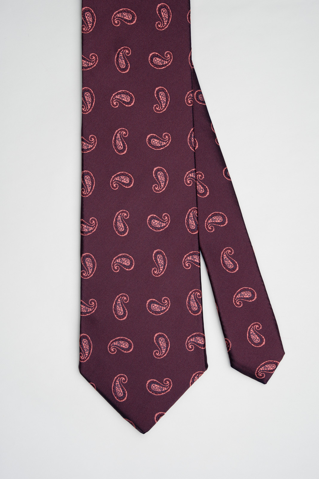 Hledáte kravatu, která zvýrazní váš outfit a zároveň si zachová elegantní charakter? Model BANDI BRUCO 05 v bordó odstínu s jemným celoplošným paisley vzorem je ideální volbou pro muže, kteří se nebojí barev.