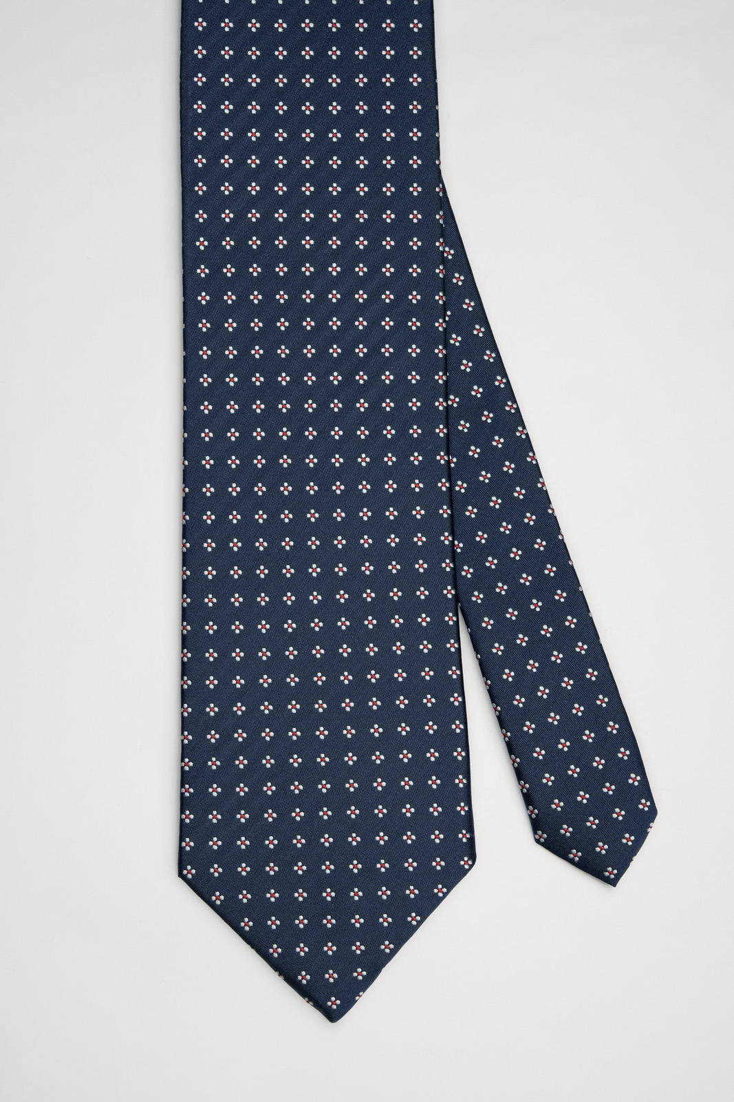 Drobný pravidelný vzor působí elegantně a nenápadně, díky čemuž je kravata ideální volbou pro každodenní nošení i slavnostnější příležitosti.