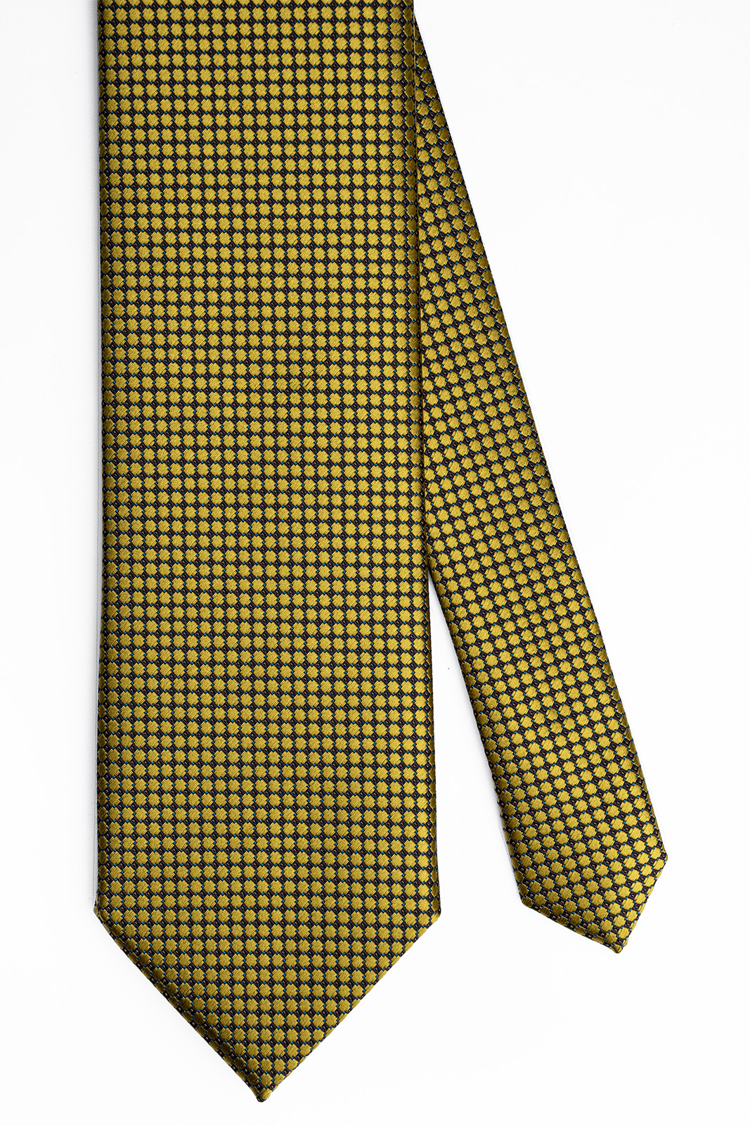 Hledáte kravatu, která zvýrazní váš outfit a zároveň bude působit elegantně? Model MARTIM 26 s celoplošnou geometrickou texturou v odstínech zlatavě žluté je skvělou volbou pro muže, kteří chtějí sofistikovaný doplněk s originálním vzhledem.