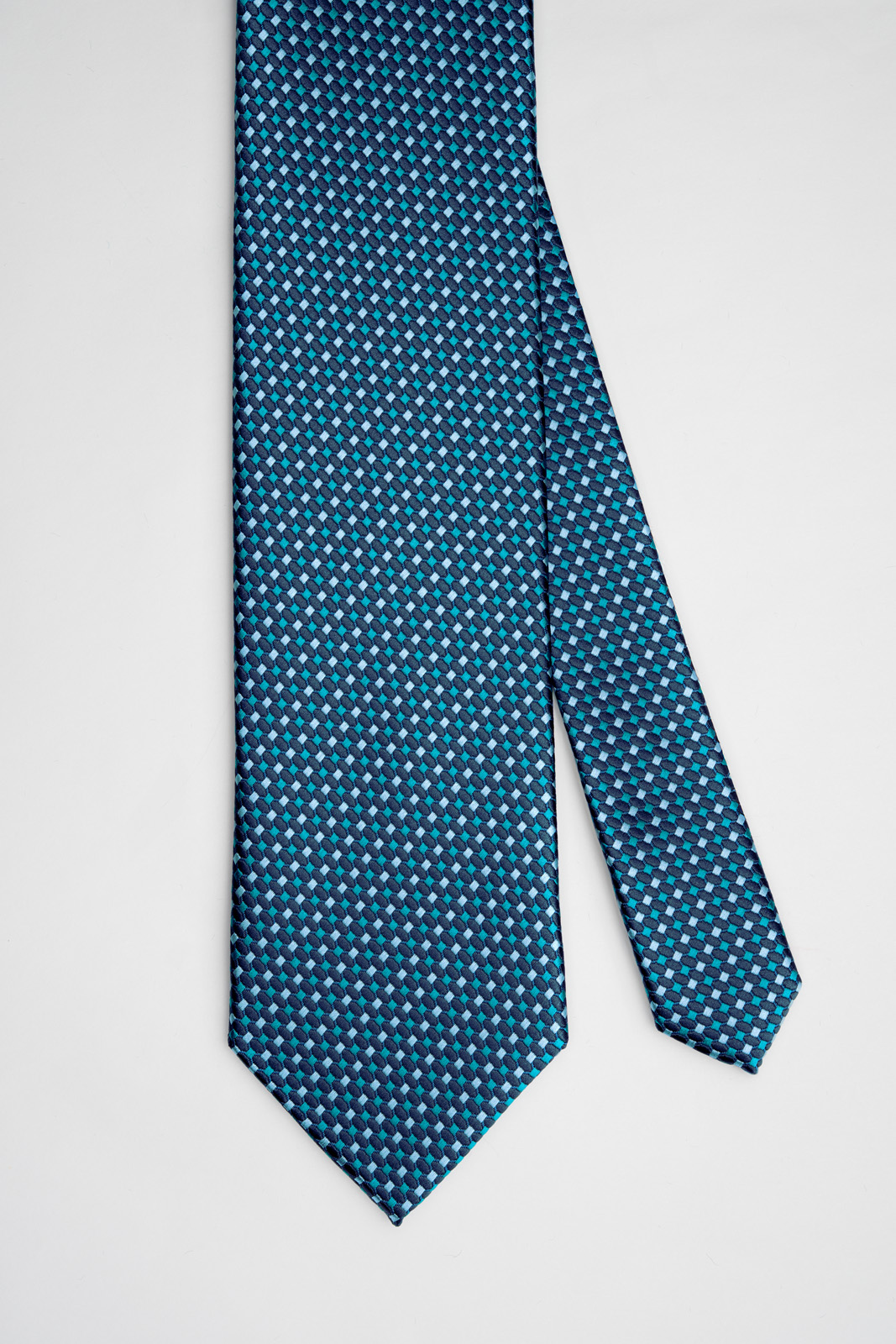 Oživte svůj formální i volnočasový outfit pánskou kravatou s elegantním vzorem. Model BANDI SALTARE 01 v petrolejovém odstínu zaujme jemným celoplošným geometrickým motivem, který působí moderně. Díky vyvážené kombinaci tmavších a světlejších tónů je ideální volbou pro pracovní schůzky, společenské události i slavnostní příležitosti, kde chcete působit upraveně a stylově.