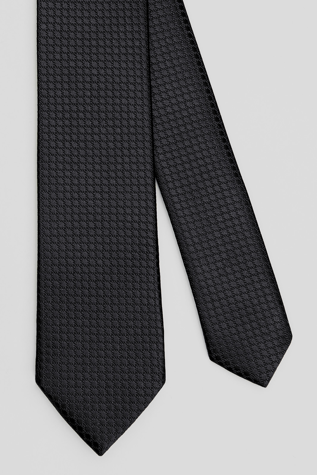 Kravata je ušitá v klasickém střihu REGULAR a skvěle sedí mužům standardní i objemnější postavy. Umožňuje pohodlné vázání uzlů, jako je Four-in-Hand nebo Windsor, které v černém provedení působí mimořádně elegantně.