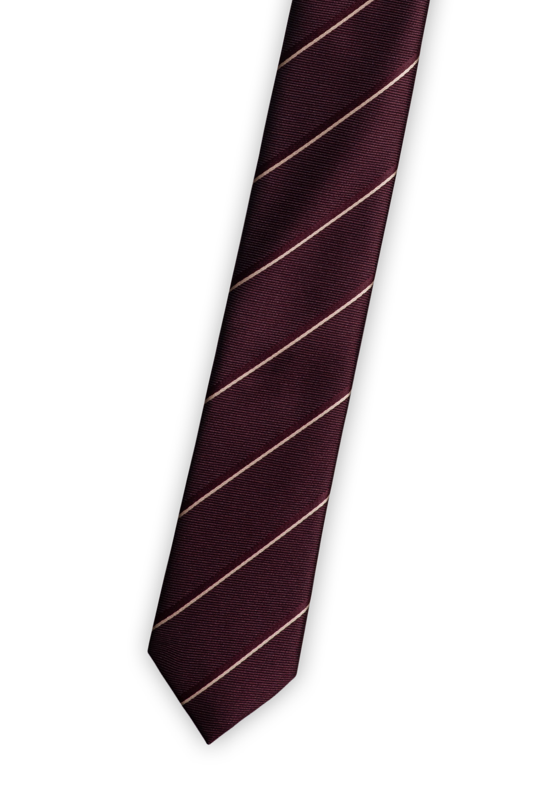 Vázanka je ušitá v úzkém střihu slim, jenž se hodí k mužům štíhle a standardní postavy. Pro tento typ byste měli rovněž volit tenčí kravatové uzly – například Windsor Half a Four in Hand.
