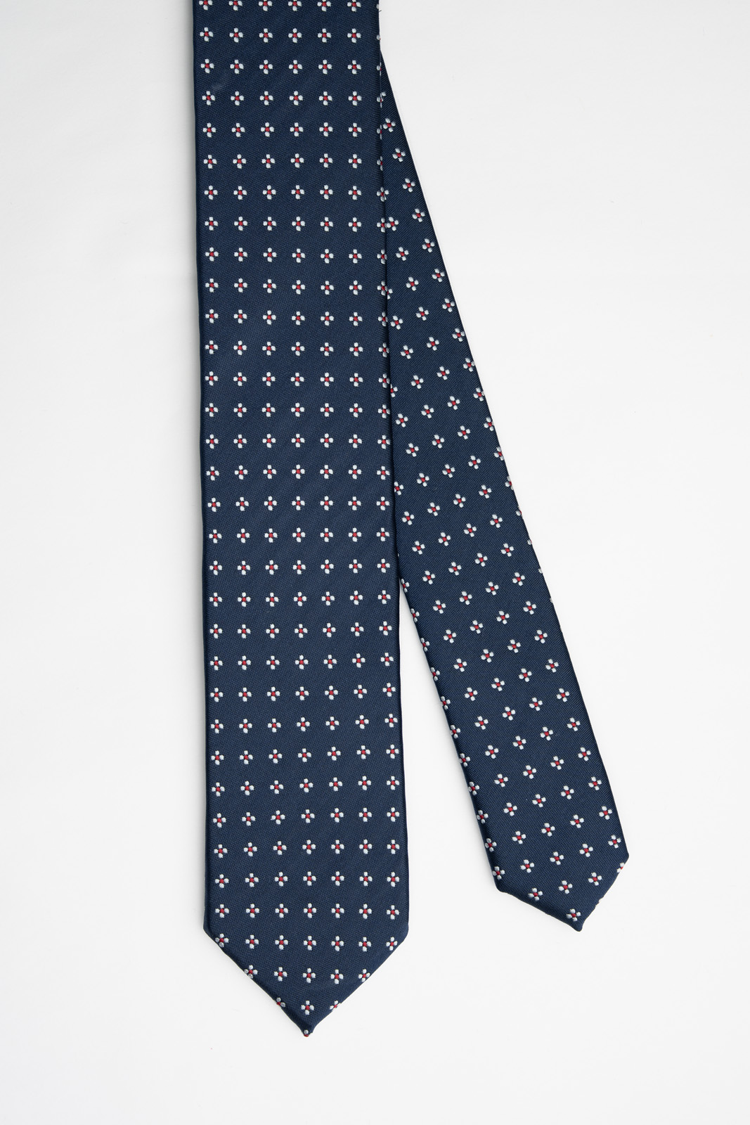 Drobný pravidelný vzor působí elegantně a nenápadně, díky čemuž je kravata ideální volbou pro každodenní nošení i slavnostnější příležitosti.