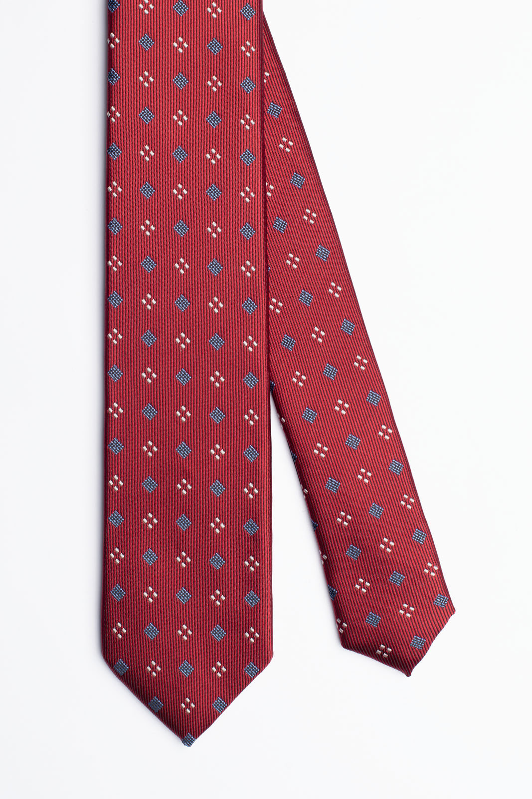 Kravata BANDI REGIO 02 ve vínové barvě s geometrickým vzorem se hodí pro formální i neformální události. Dobrý dojem zanecháte v práci i na všech večerních událostech, jakými jsou plesy, divadelní představení či koncerty.