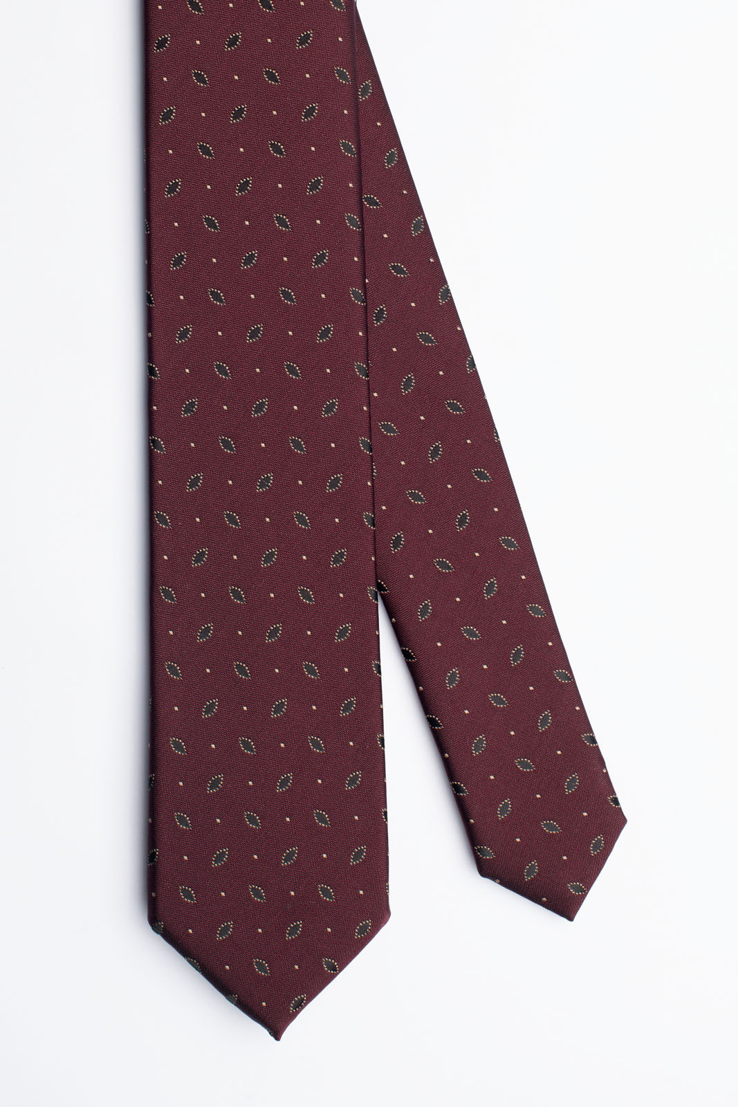 Kravata BANDI RONCALO 01 v tmavé bordó barvě s decentním grafickým vzorem se hodí pro formální i neformální události. Dobrý dojem zanecháte v práci i na všech večerních událostech, jakými jsou plesy, divadelní představení či koncerty.