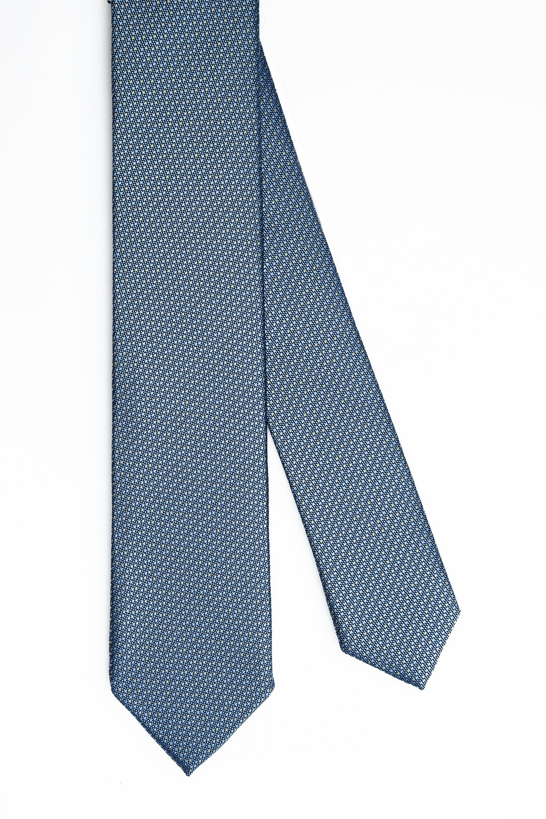Elegantní pánská kravata v modrošedém odstínu s jemnou strukturou dodá vašemu outfitu moderní a upravený vzhled. Strukturovaný povrch s decentním odleskem působí luxusně, ale zároveň nenápadně, díky čemuž se kravata hodí na slavnostní příležitosti i do zaměstnání.