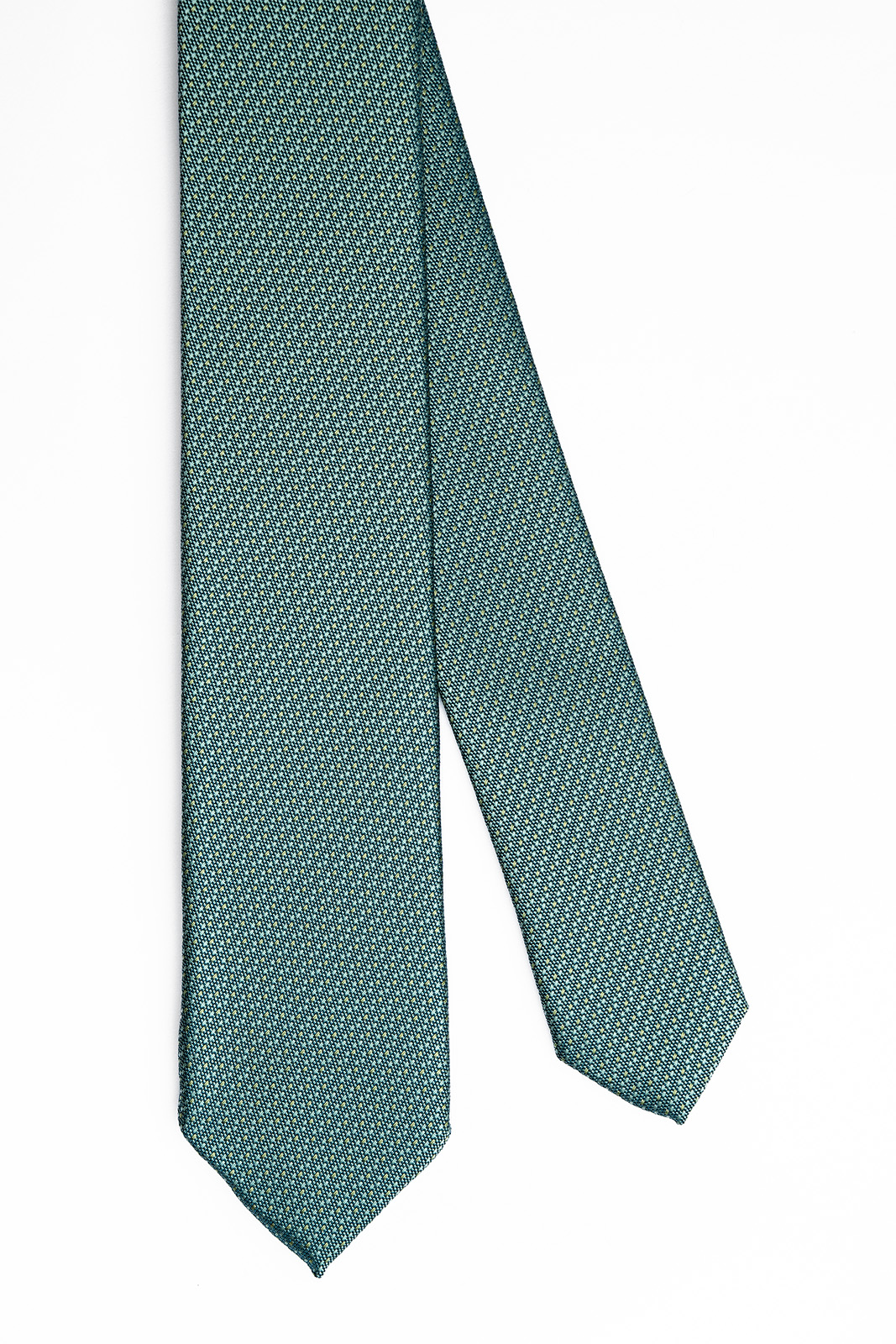 Stylová kravata v tlumeném zelenošedém odstínu s jemnou strukturou představuje dokonalou rovnováhu mezi elegancí a originalitou. Vzorovaná látka působí plasticky, a přesto zůstává decentní, což z ní činí vhodný doplněk pro formální příležitosti i běžné nošení do kanceláře.