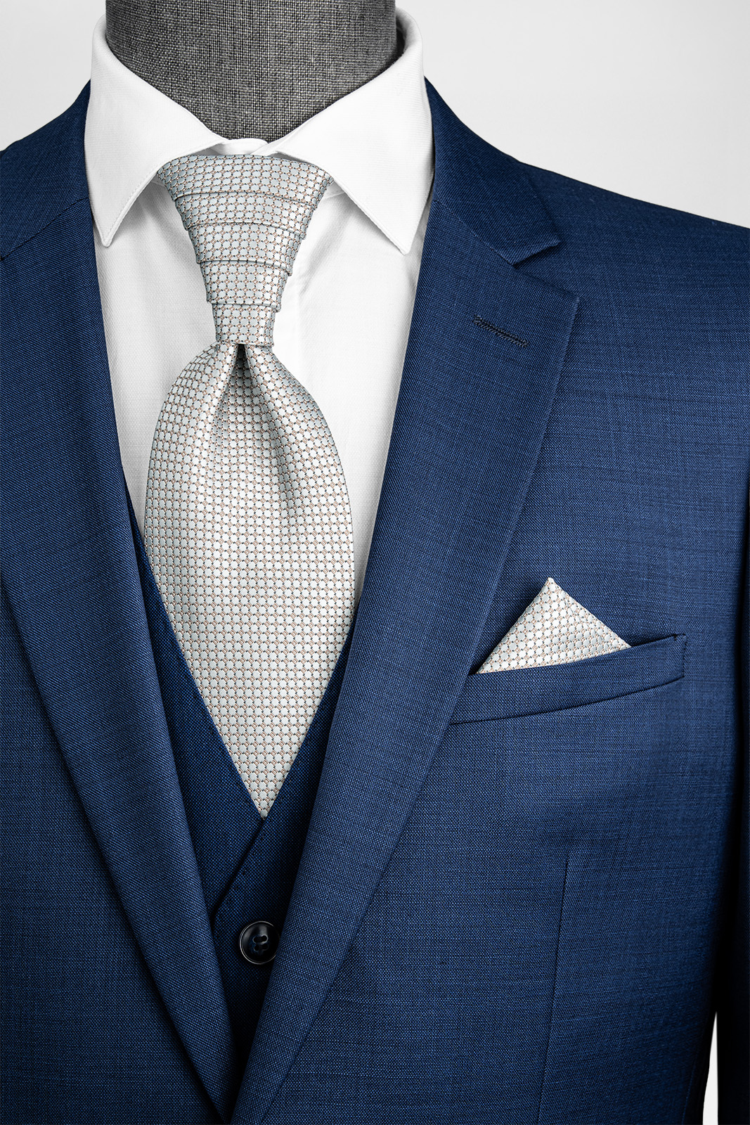 Regata je již předvázaná, takže si ušetříte čas při oblékání – stačí ji pomocí háčku jednoduše upevnit pod límec košile. Součástí balení je také ladící kapesníček do náprsní kapsy, se kterým snadno vytvoříte dokonale sladěný outfit.