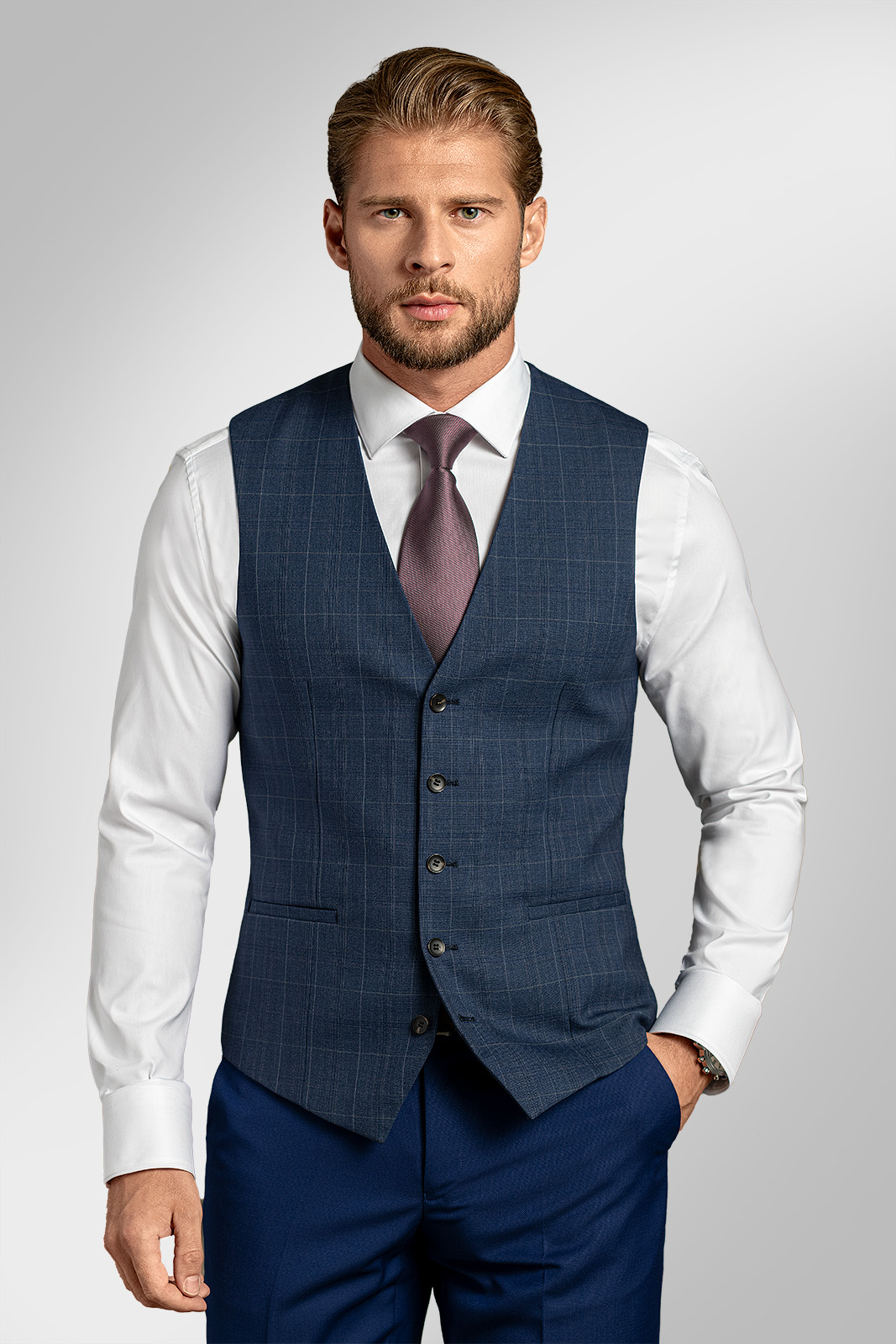 Máte rádi decentní vzory, které vašemu outfitu dodají elegantní a osobitý vzhled? Pánská vesta ALECO v modré barvě s jemným károvaným vzorem pro vás bude skvělou volbou.