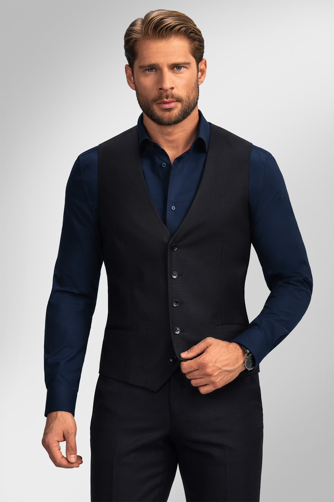 Černá barva působí elegantně a univerzálně – snadno ji zkombinujete s oblekem na svatbu, pracovní jednání i slavnostní večer. Jemná mikrostruktura dodává vestě moderní nádech a odlišuje ji od klasických hladkých modelů.