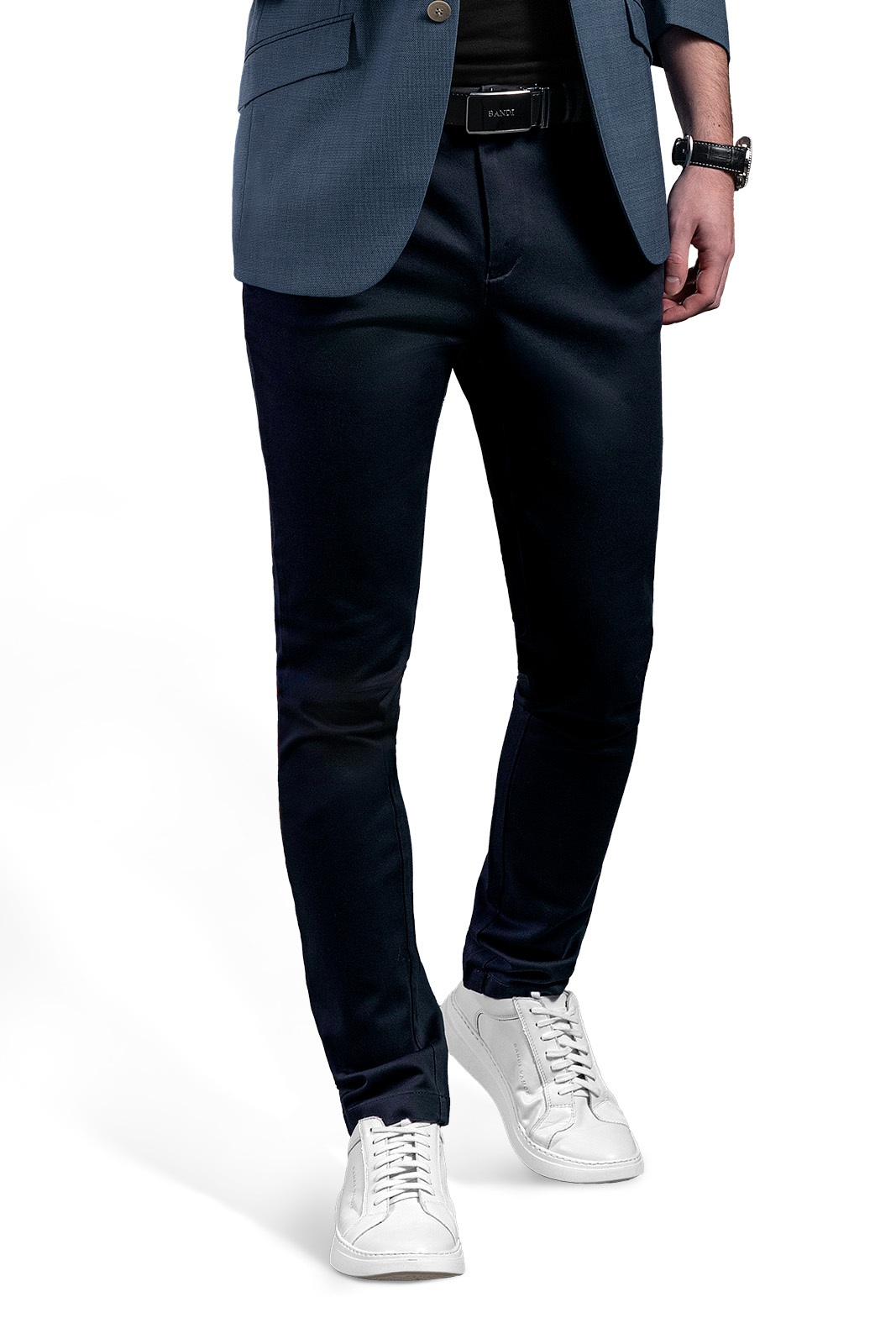 Kalhoty můžete doplnit o volnočasový opasek BANDI, který díky koženým detailům sladíte s obuví.
