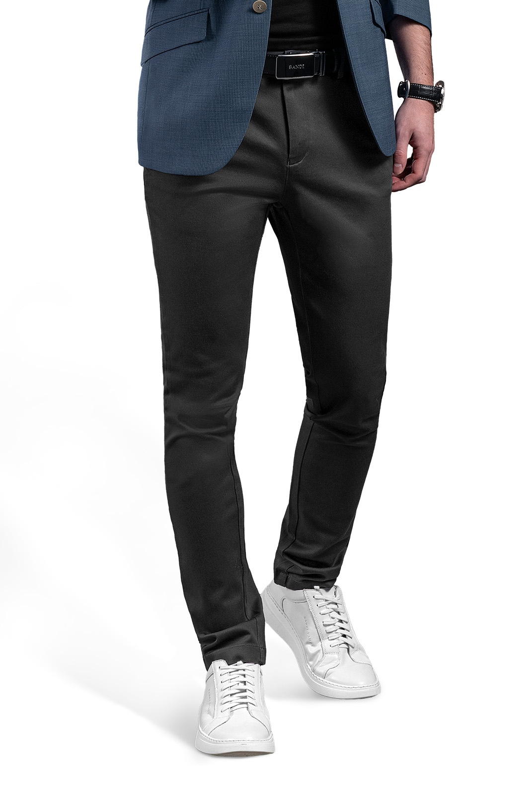 Kalhoty můžete doplnit o volnočasový opasek BANDI, který díky koženým detailům sladíte s obuví.