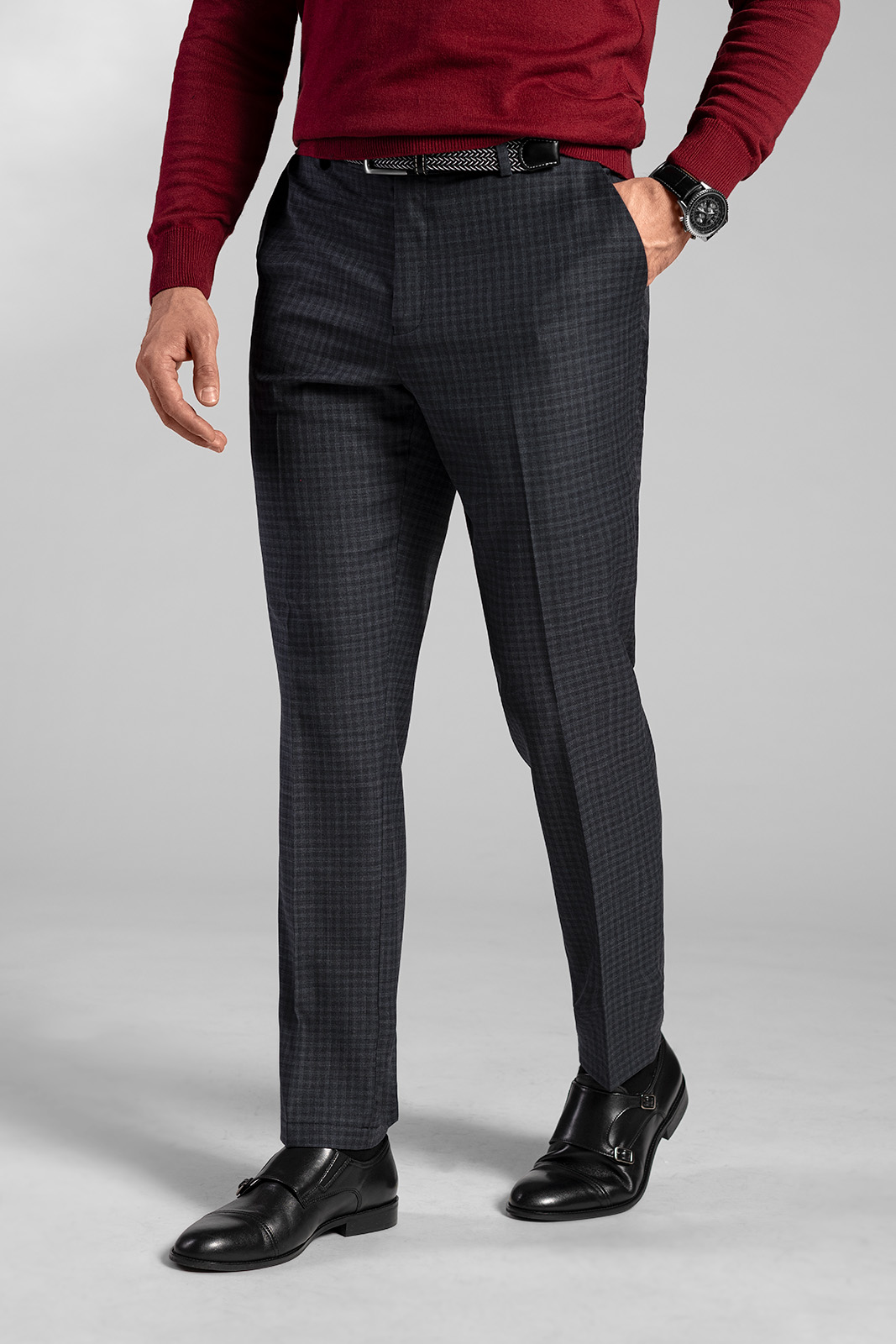 Objevte dokonalé spojení klasické elegance a moderního designu. Pánské kalhoty TIMERO v antracitové barvě s decentním kostkovaným vzorem dodají vašemu vzhledu jedinečný a originální nádech.