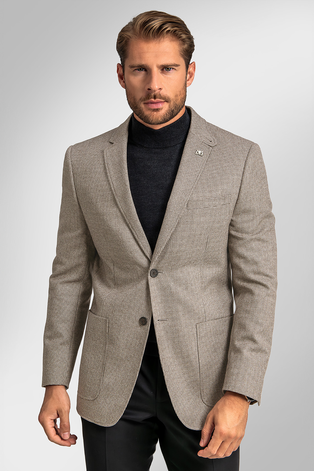 Podrobný popisDecentní vzor kohoutí stopy v kombinaci s nakládanými kapsami, ozdobným prošitím a originálně řešenou klopou dodává saku osobitý charakter. Světlý odstín působí svěže a výborně se kombinuje s dalšími prvky volnočasového šatníku – skvěle ladí s chinos kalhotami, tmavšími džínami i svetrem v tlumených tónech.