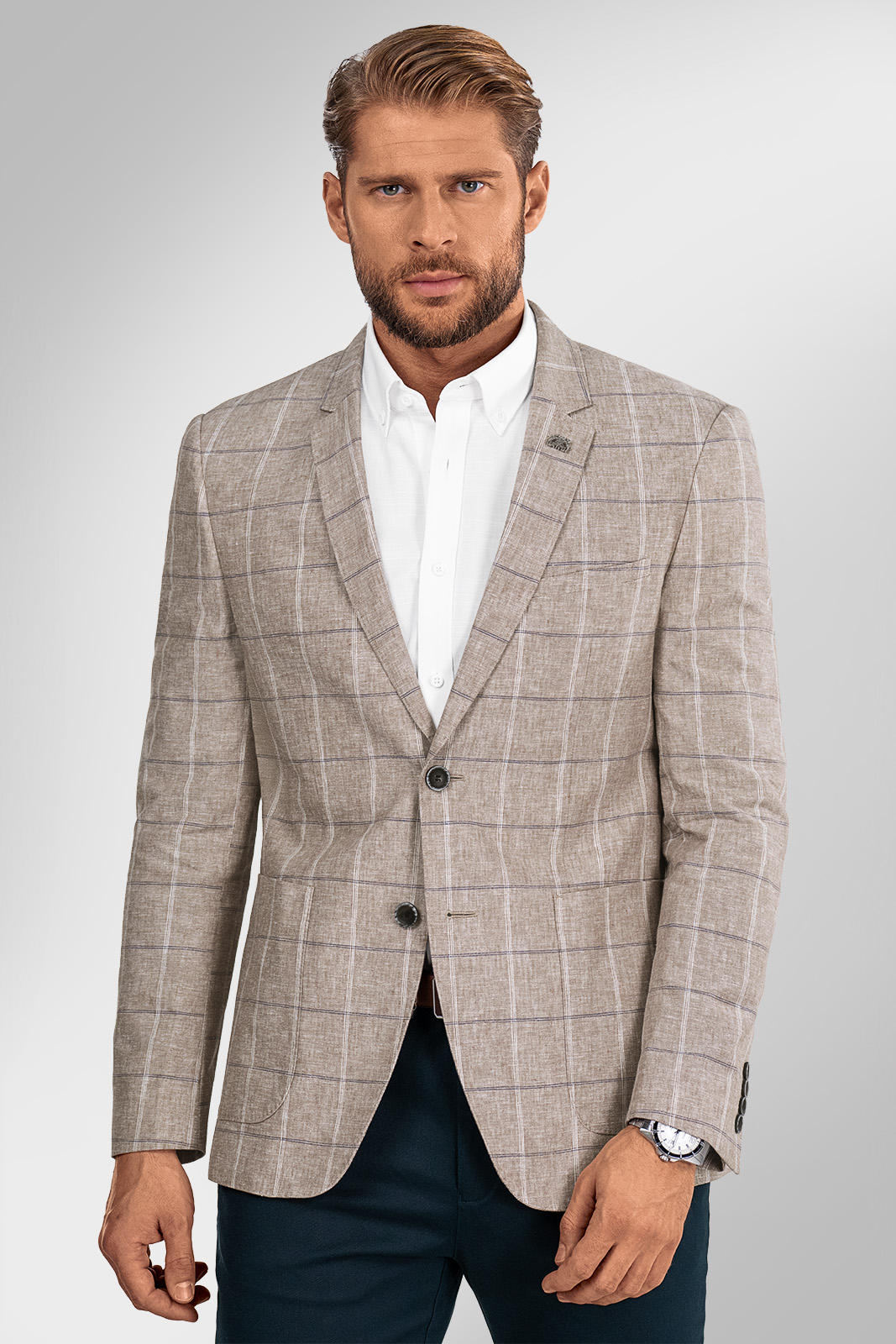 Podrobný popisPánské sako JEREMIO v béžové barvě působí decentně a zároveň stylově, což z něj činí skvělou volbu pro formální i volnočasové letní outfity.