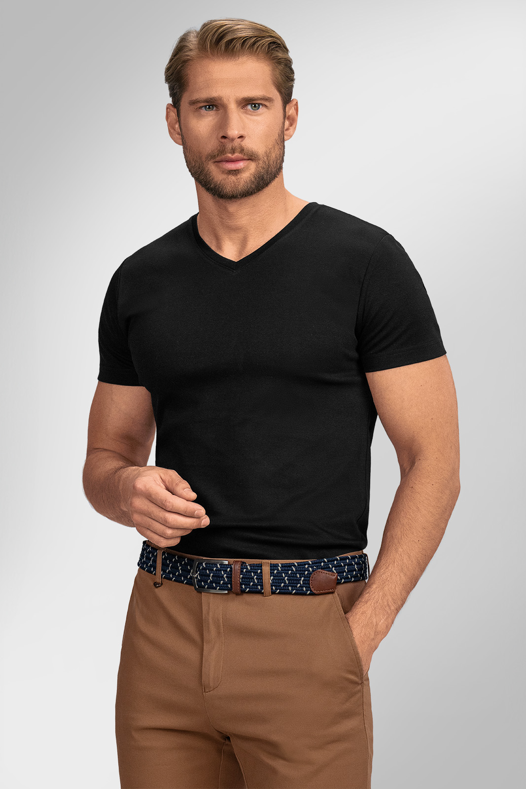Pánské tričko BELTECO s výstřihem do V je ideální volbou pro muže, kteří chtějí svému outfitu dodat elegantní nádech a zároveň si užívat komfort prémiové bavlny.