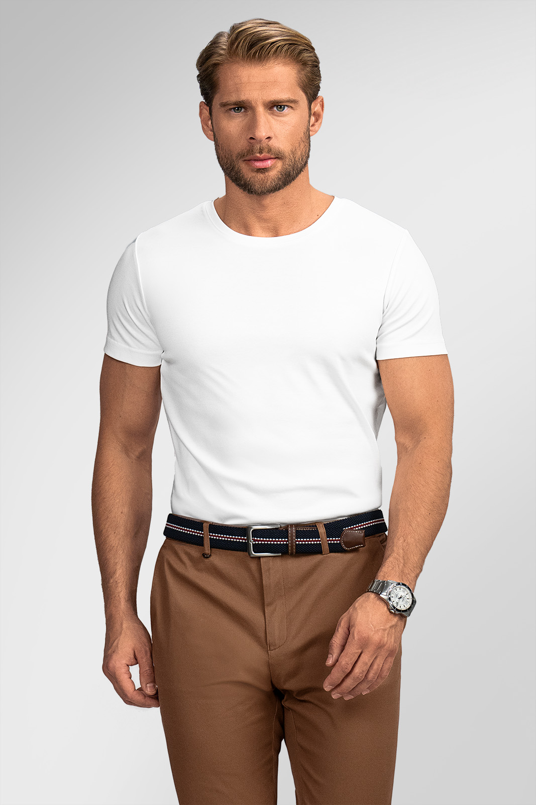 Střih trička byl navržen tak, aby přiléhal k tělu, zvýraznil přirozené rysy postavy a dodal outfitu upravený a sebevědomý vzhled. Můžete jej nosit samostatně nebo jako spodní vrstvu pod košile, svetry či saka. Vždy tak budete vypadat stylově a upraveně.