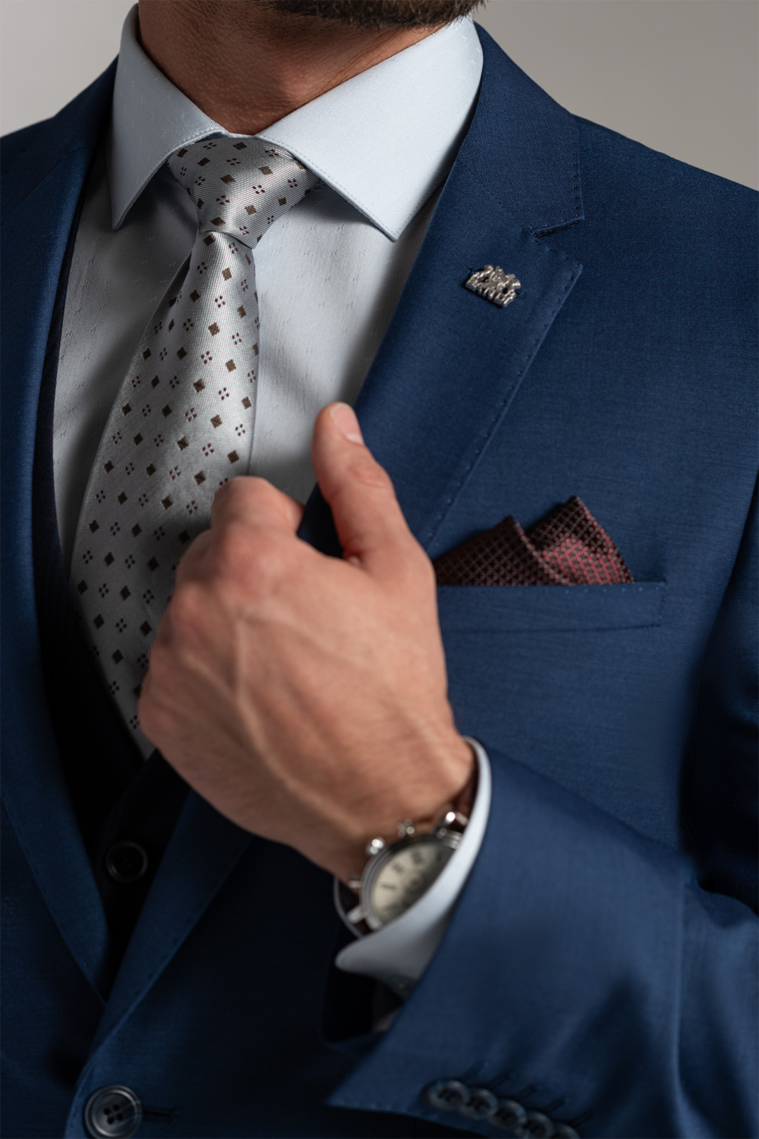 Podrobný popisModel MARTIM 11 s jemnou celoplošnou strukturou a decentním odleskem dokonale doplní slavnostní vzhled a podtrhne vaši osobnost. Pomocí kapesníčku v bordó barvě se perfektně sladíte s partnerkou na svatbě, plese, či při návštěvě divadla.