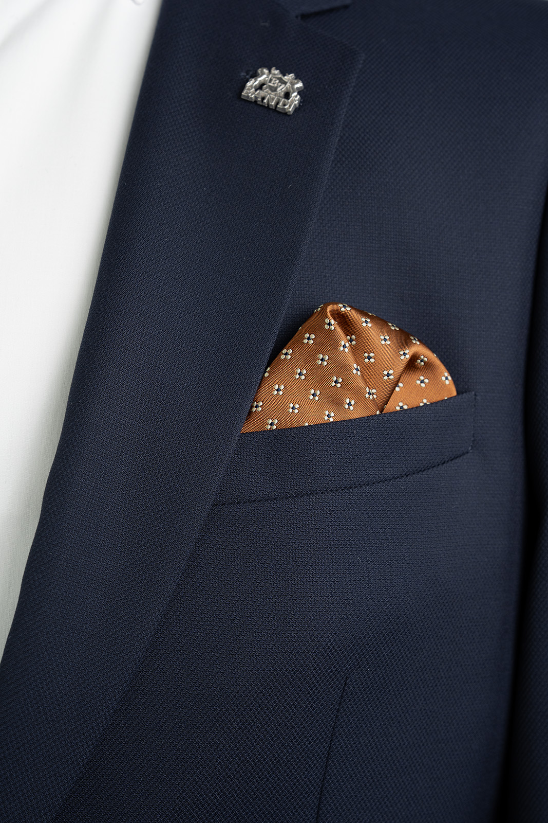 Podrobný popisDecentní drobný motiv dodává kapesníčku sofistikovaný charakter, díky kterému se skvěle hodí jak ke slavnostnímu obleku na svatby a společenské události, tak i k ležérnějšímu saku do kanceláře či na volnočasové příležitosti. Teplý barevný tón snadno zkombinujete s tmavě modrými, šedými i béžovými saky.