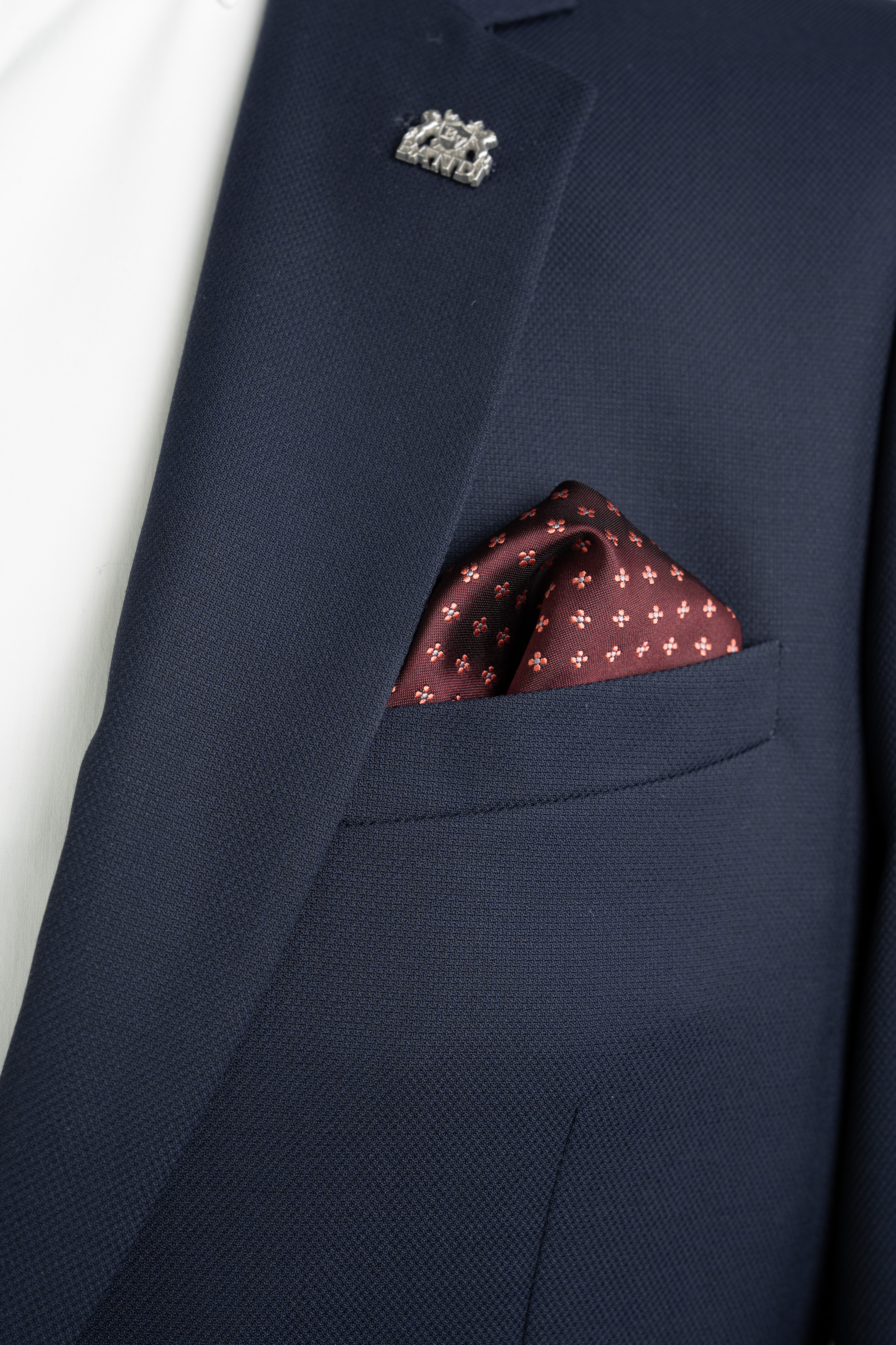 Zkombinujte kapesníček s kravatou v podobném vínovém odstínu nebo jej použijte jako barevný akcent k jednobarevné kravatě. Výsledkem bude harmonický a stylově vyvážený outfit.