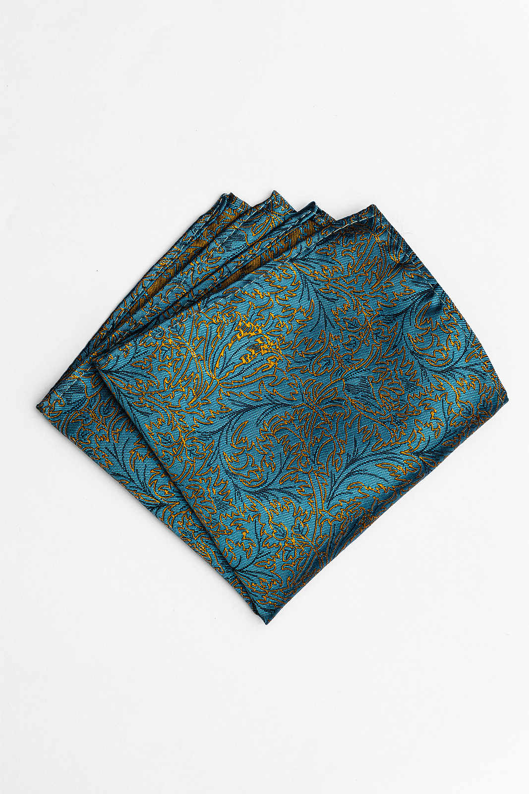 Chcete dodat svému outfitu šmrnc a podtrhnout svůj osobitý styl? Elegantní pánský kapesníček BANDI MERTO 02 v tyrkysově modré barvě se zlatým ornamentálním vzorem je ideální volbou.