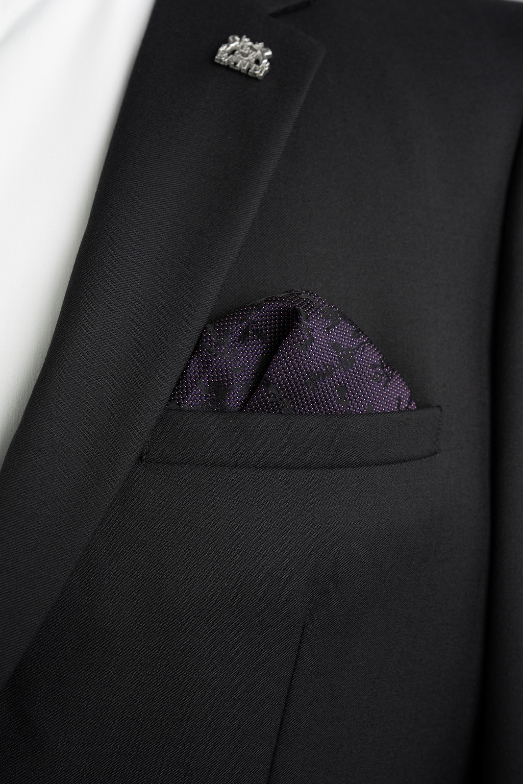 Hledáte elegantní detail, který podtrhne váš vytříbený styl? Pánský kapesníček do saka BANDI RICIAMO 04 ve fialovém odstínu s tmavým vzorem je nadčasovým doplňkem pro společenské příležitosti.