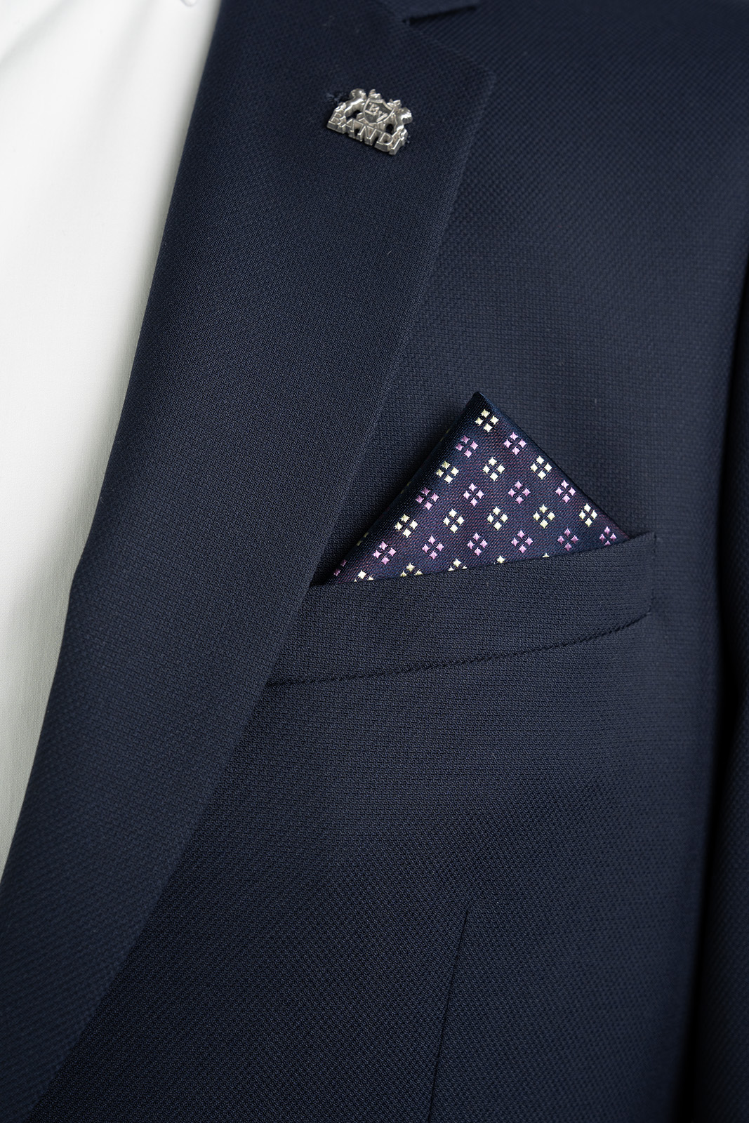 Dolaďte svůj oblek do posledního detailu s pánským kapesníčkem BANDI ROMBO 01 v tmavě modrém odstínu. Jemný geometrický vzor v kontrastních tónech dodává tomuto doplňku elegantní, ale zároveň moderní charakter.