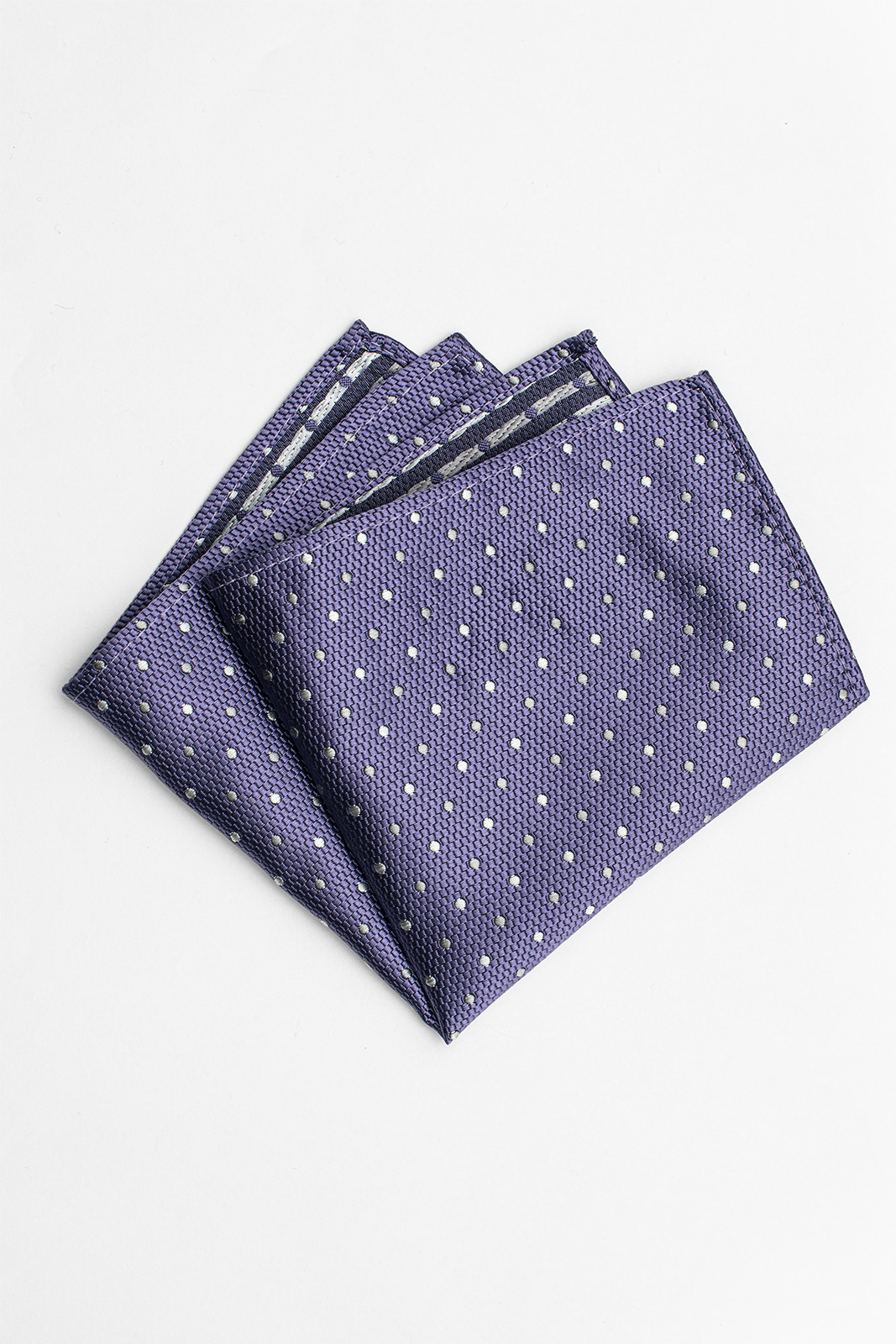 Zkombinujte kapesníček s kravatou nebo motýlkem v podobném fialovém tónu. Bílé puntíky navíc umožňují snadné sladění s bílou košilí, čímž vytvoříte elegantní celek.