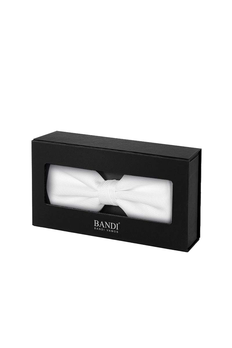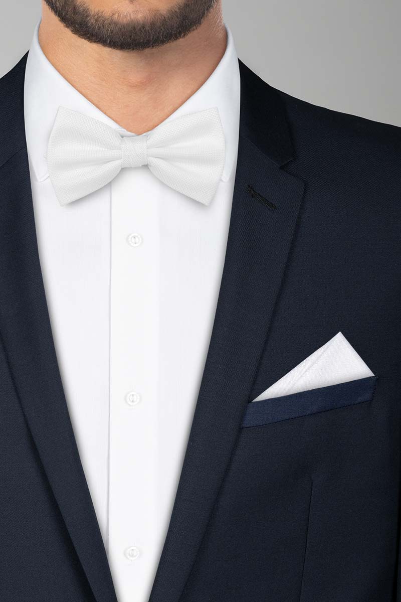 Doplňte slavnostní outfit ženicha luxusním bílým motýlkem s decentní texturou, která motýlek velmi ozvláštní.