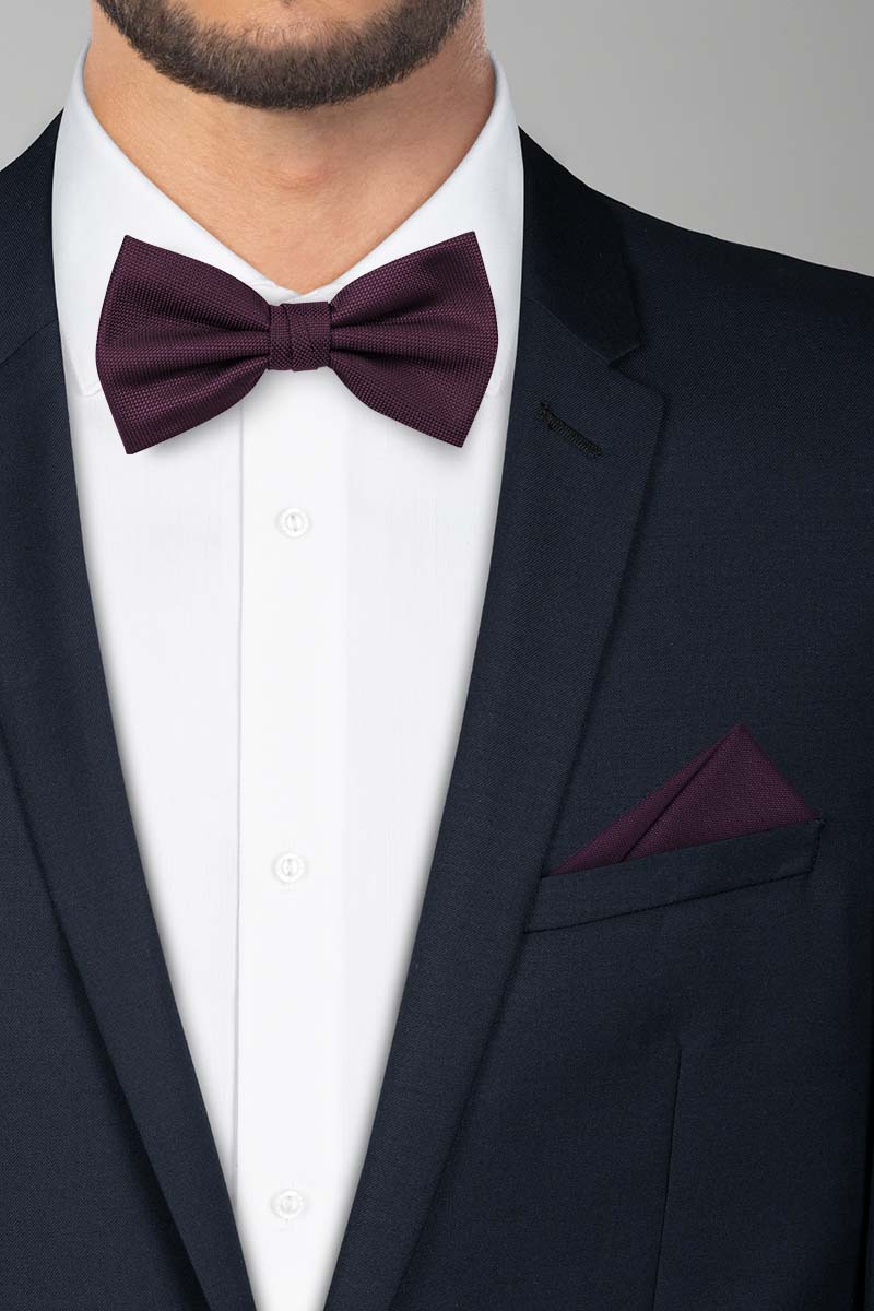Vínový motýlek v tmavém odstínu barvy krásně vynikne v kombinaci s bílou nebo krémovou košilí.