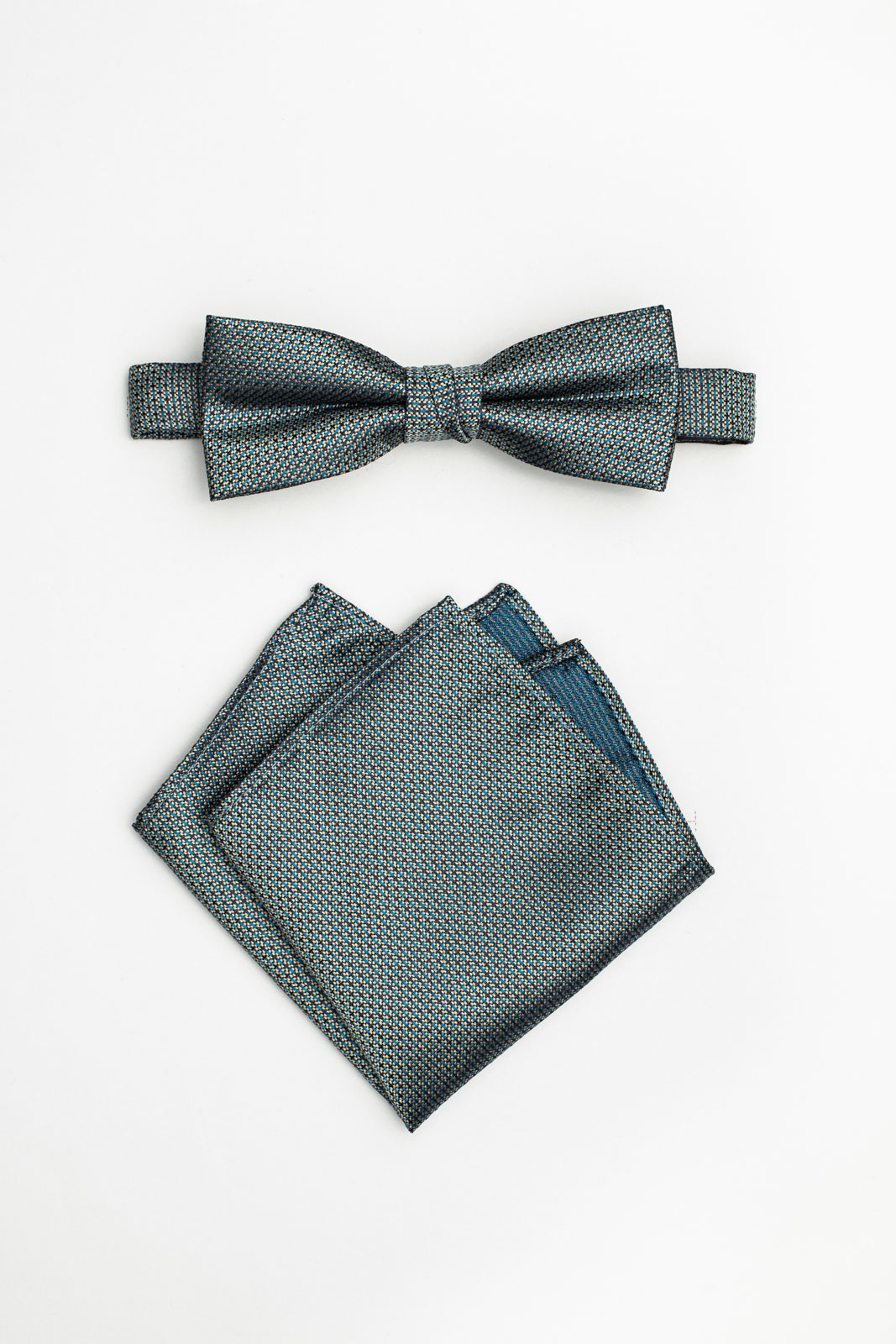 Motýlek BANDI NIRFE 04 v petrolejovém odstínu spolu s kapesníčkem ve stejném designu stylově doplní váš oblek na oslavné a společenské události. Doporučujeme všem gentlemanům s vytříbeným vkusem a smyslem pro noblesu.