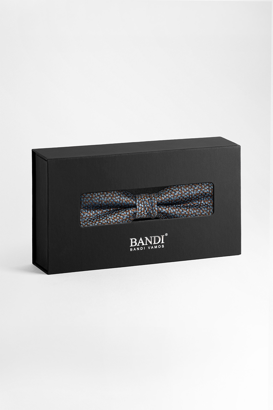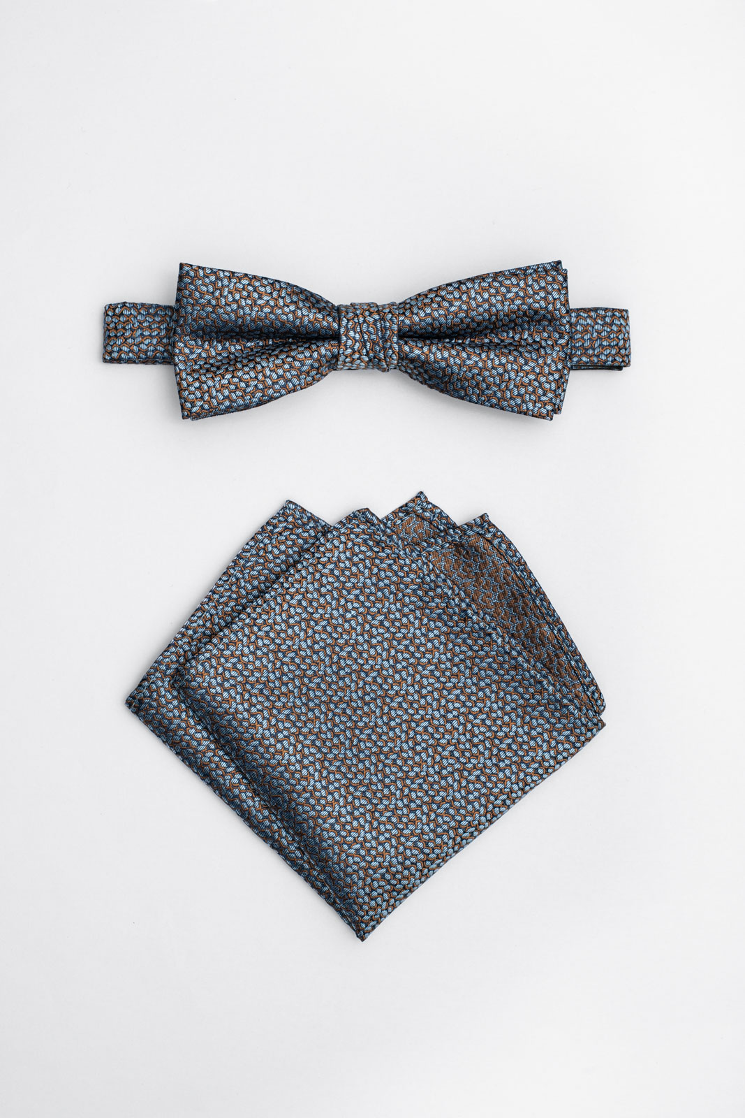 Motýlek BANDI SALMO 02 v modré a měděné barvě spolu s kapesníčkem ve stejném designu stylově doplní váš oblek na oslavné a společenské události. Doporučujeme všem gentlemanům s vytříbeným vkusem a smyslem pro noblesu.