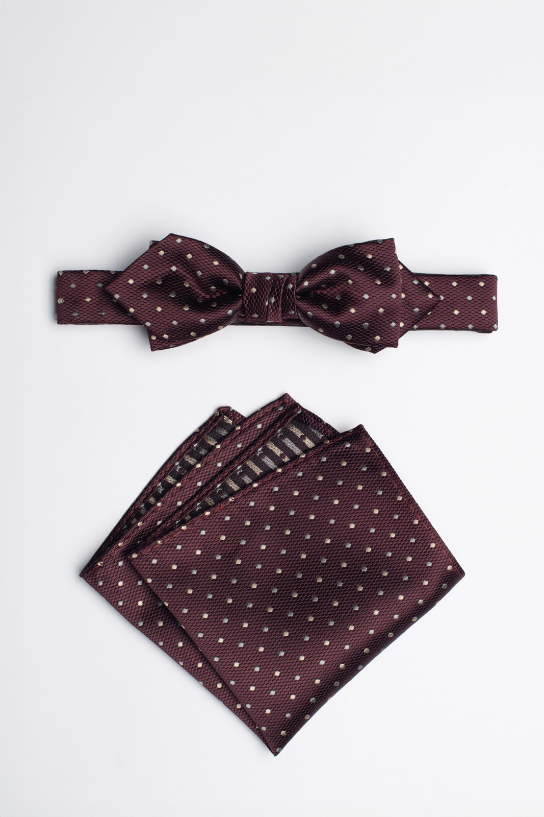 Podrobný popisBordó barva, decentní vzor puntíků a nadčasový design obou stylových módních doplňků vtisknou osobité kouzlo a eleganci všem vašim slavnostním outfitům.