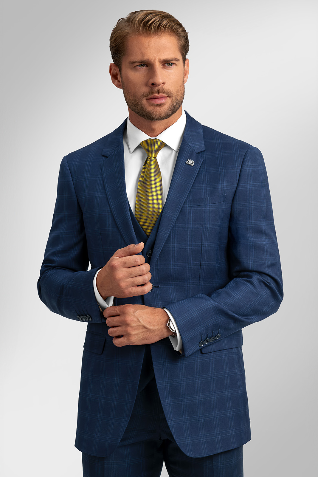 Ženíte se a hledáte výjimečný oblek? Sestavte si nevšední svatební outfit s kobaltově modrým oblekem Ramone. Jeho legendární vzor nechá vyniknout váš originální styl i mužnou eleganci. Přesně tak, jak od vás nevěsta očekává.