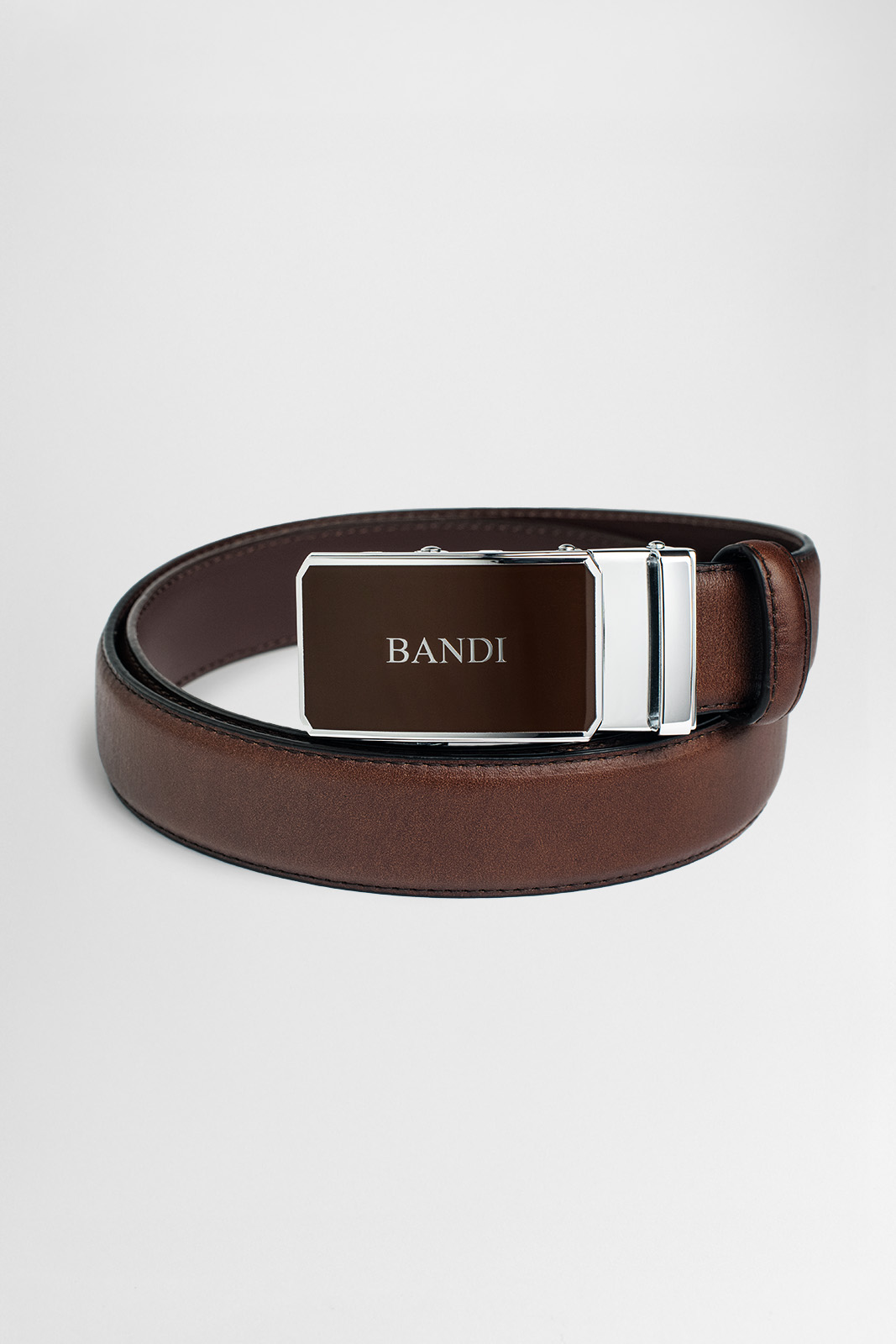 Automatická spona v hnědém provedení s logem BANDI je stylová a mimořádně praktická – umožňuje snadné utažení či povolení jedním pohybem. Délku opasku si navíc můžete upravit přesně podle svého obvodu pasu. Podívejte se, jak si opasek jednoduše zkrátit.