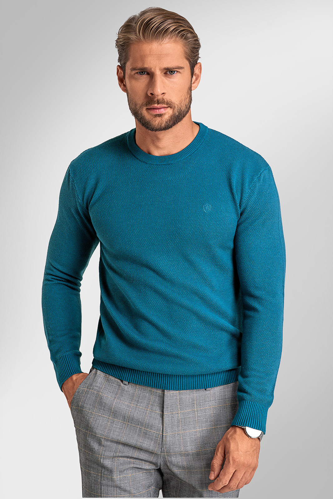 Hledáte výrazný svetr, který dodá vašemu outfitu osobitost a zároveň si zachová elegantní vzhled? Model EDGARO v petrolejovém odstínu zaujme jemnou strukturou, která dodává svetru svěží sportovní nádech při zachování formálního kultivovaného stylu. Skvěle doplní šatník muže, který preferuje moderní tóny.