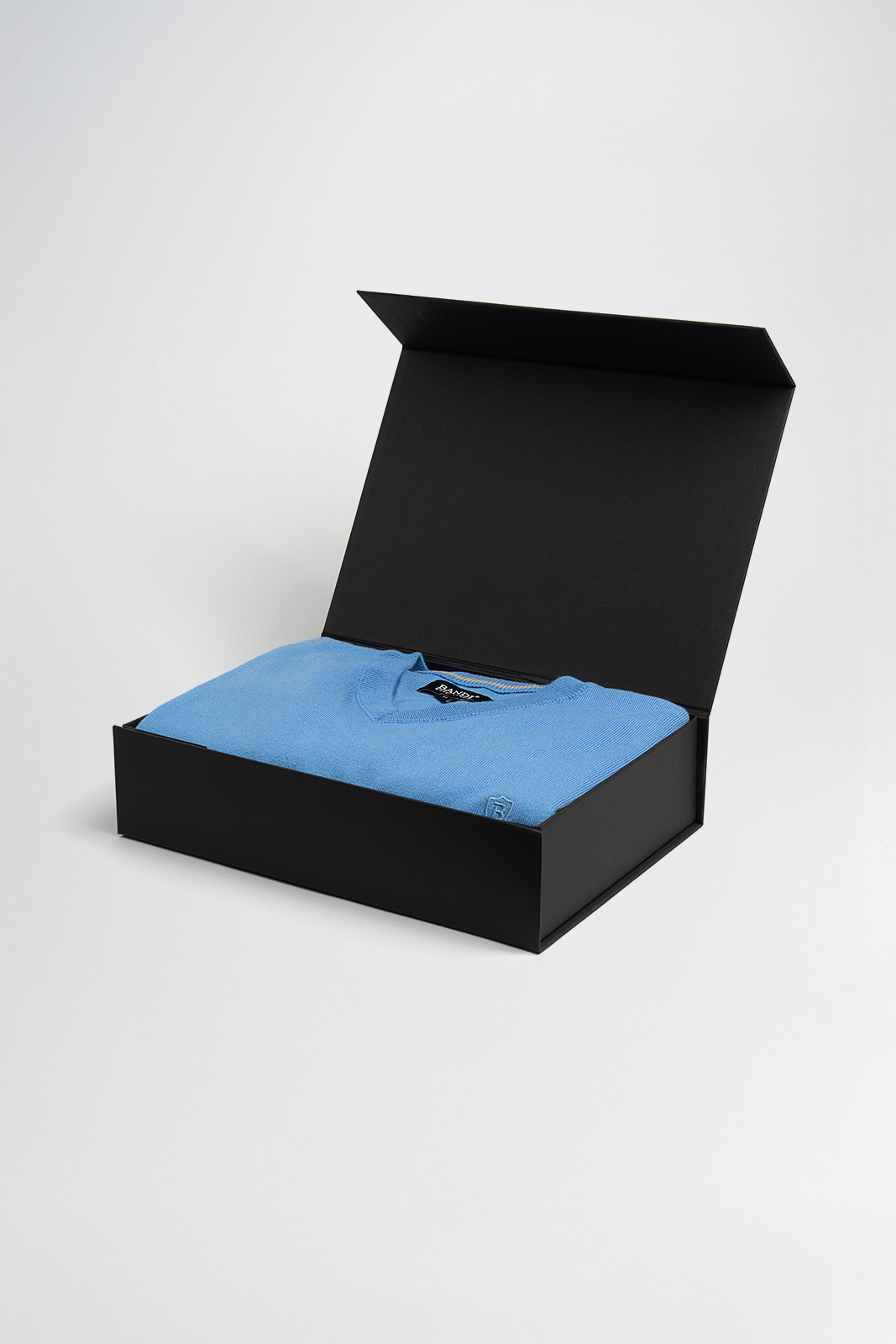 Pokud hledáte dárek, který v sobě spojuje eleganci a praktičnost, dárkový set BANDI s pánským svetrem v luxusním boxu je tou pravou volbou. Elegantní svetr GARVENTO v modré barvě se stane oblíbeným kouskem v šatníku každého muže.