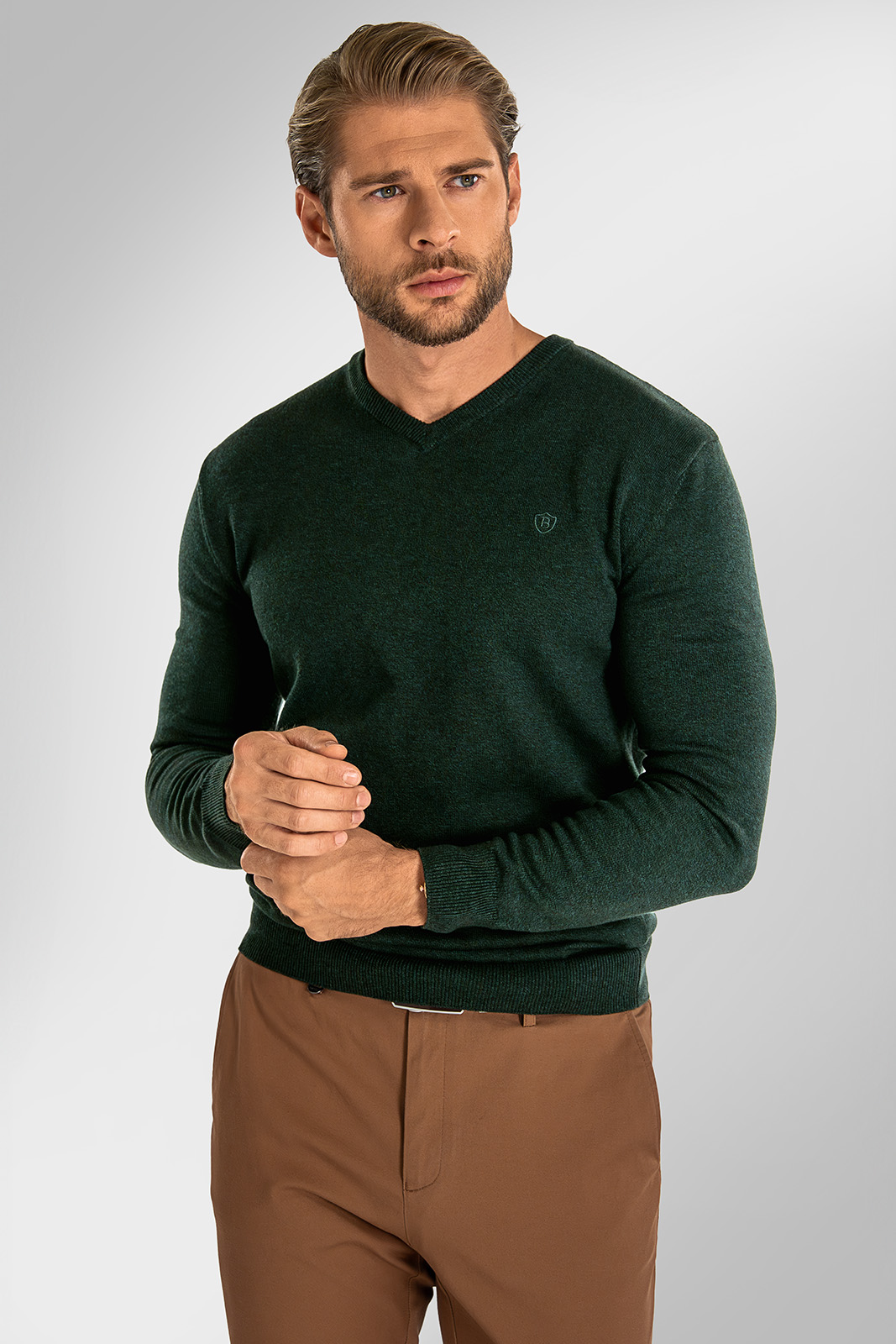 Výstřih do „V“ nechá krásně vyniknout košilovému límci a vytváří elegantní rám obličeje. Tato varianta působí o něco formálněji a je vhodná především pro kombinaci s košilí a kravatou – například pod pánské sako BANDI.