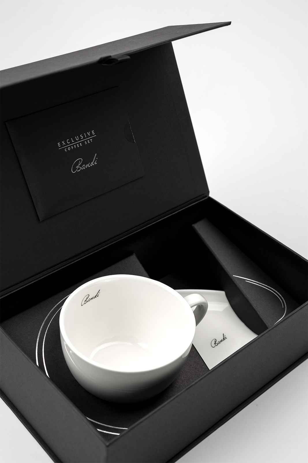 Obdarujte své blízké jedinečným porcelánovým šálkem s podšálkem BANDI v luxusní dárkové kazetě. Značková porcelánová sada zaujme svým jedinečným designem a potěší obdarovaného muže i ženu při posezení u kávy každý den.
