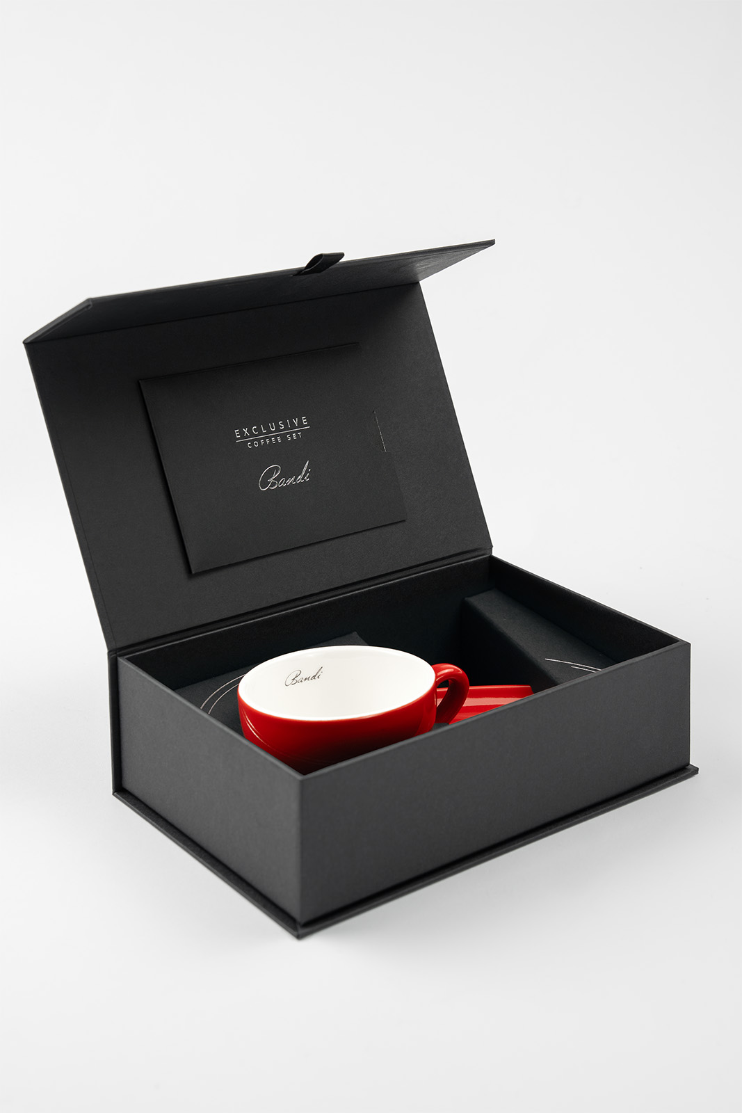 Porcelánový šálek na kávu BANDI Rosso, 80 ml, v dárkovém boxu