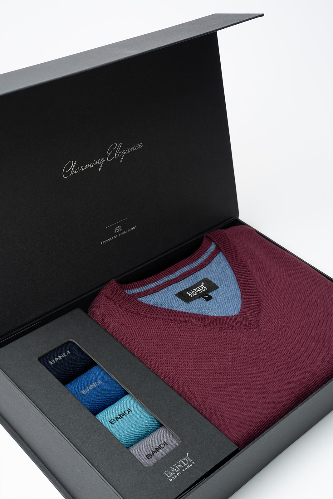 Dárkový set pánského svetru BANDI a ponožek BAMBOO představuje dokonalé spojení pohodlí a nadčasové elegance. Perfektně doplní pánské outfity do kanceláře, pro volný čas i na neformální společenské události.