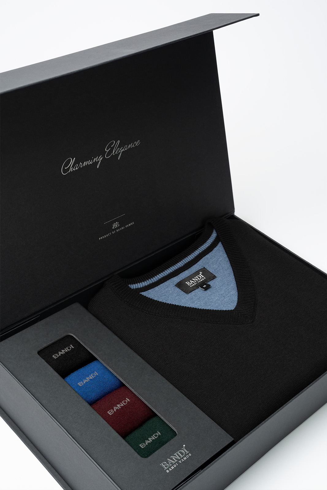 Dárkový set pánského svetru BANDI a ponožek BAMBOO představuje dokonalé spojení pohodlí a nadčasové elegance. Perfektně doplní pánské outfity do kanceláře, pro volný čas i na neformální společenské události.