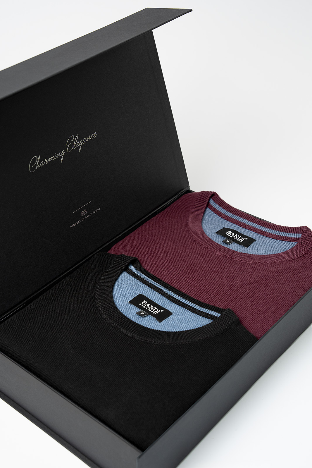 Set pánských svetrů AUGUSTIO Marsala a Nero, 2 ks v dárkovém boxu